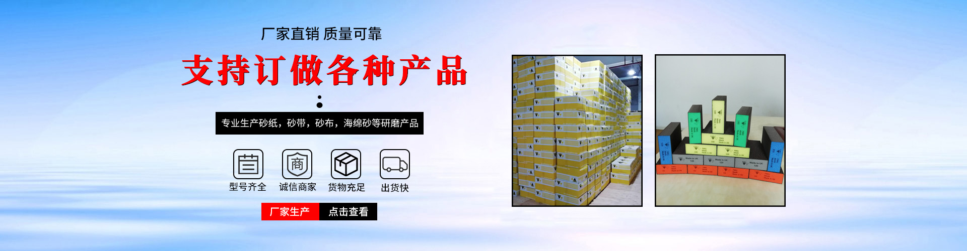 東莞市科科研磨材料有限公司是一家專業生產砂紙,砂帶,砂布,海綿砂等研磨產品的企業,公司位于東莞市厚街鎮南五社區東坑街。 我們自創立以來一貫秉承:專業、認真、快,信守承諾,以人為本,客戶至上,追求的經營理念。本著以客戶滿意為導向,持續改善為動力,經我們的努力拼搏和業內外朋友的大力支持,各方面取得...